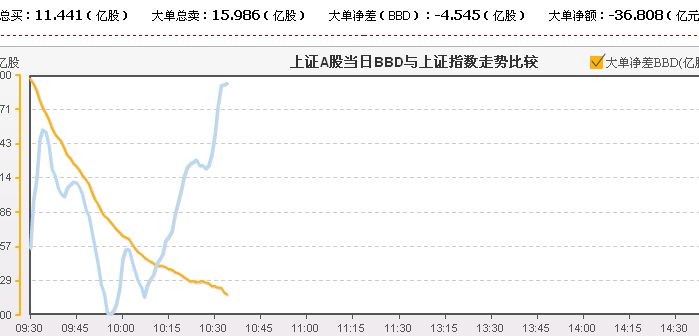 上证指数也开始翻红,BBD大单走平并出现小幅度的资金回流