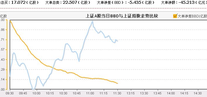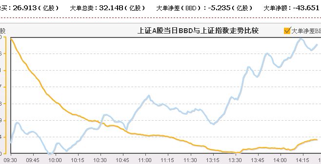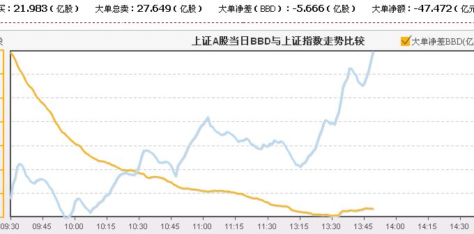 从大盘BBD指标来看,大单净差为-5.4亿股(上一交易日中午为-3亿股),净额为-45亿元(上一交易日中午为-40亿元)。今天股指受利空影响,股指大幅低开,后缓步反弹,不过大单资金仍未出现回流迹象,操作上仍谨慎为宜。