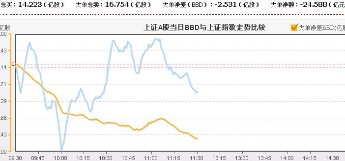 从大盘BBD指标来看,大单净差为-2.5亿股(上一交易日中午为-5.4亿股),净额为-24亿元(上一交易日中午为-45亿元)。股指今天继续围绕昨日收盘价震荡,不过大单资金依然呈现流出状态,操作宜谨慎。