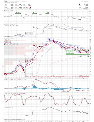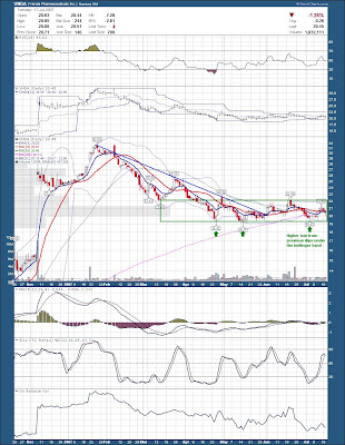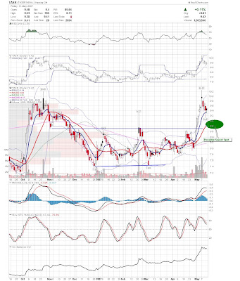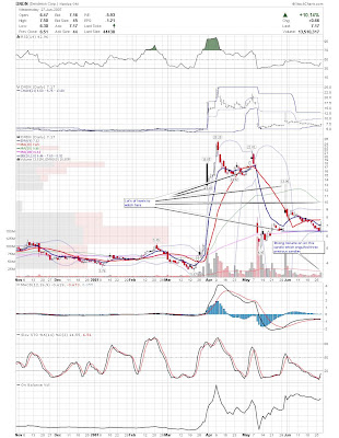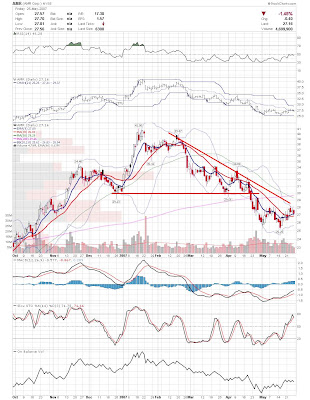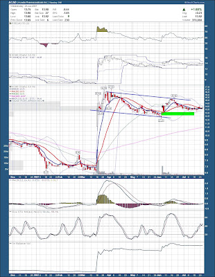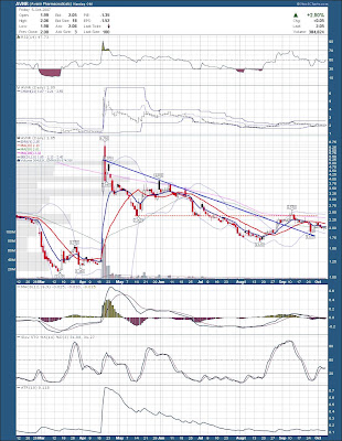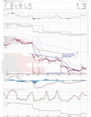 ANIK is a very low float trader, but the chart here looks solid enough to possibly risk a trade. I hate trading these sometimes because it's difficult to get out if you have a larger position, so I try to keep the positions fairly small. ANIK, much like most of the stock market corrected pretty steeply the past month. It's come back a decent amount, and is now drifting back to the 20 day sma. Sometimes these little pullbacks are weak longs locking in profits and with good money management, provide great entries. ANIK may break out if it can climb above the descending trend line shown below.