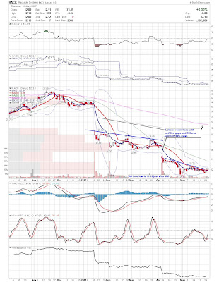 I've trade MVIS a few times this year, mostly successfully. Recently, they reported a deal with Motorola and instead of rocketing higher, it steadily sold off giving back all the post news gains. It kept dropping testing prior swing lows. I've been a bystander in this stock the past few months waiting for a low risk opportunity. Recently, it threatened to break down from an established support line, but held up, and then had a move yesterday making it back above the 50 day sma. This could of cemented the bottom here, and paves the way for a retest of the recent highs. At worst, at least now there is a clearly defined stop loss for a swing trade.