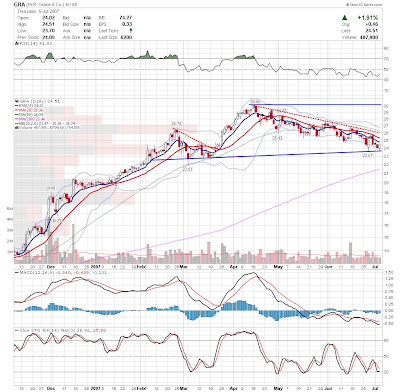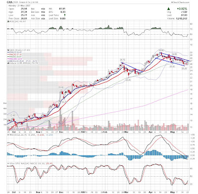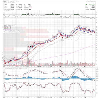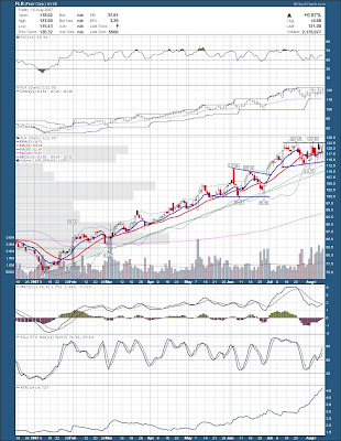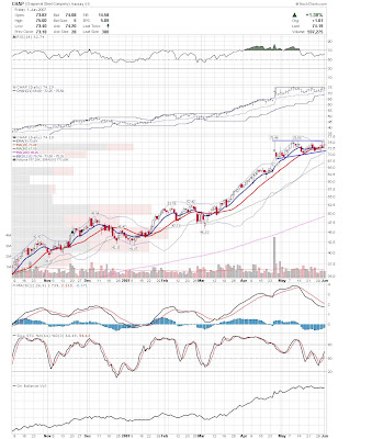 CPLA has barely budged during the few recent weak market days and remains near all time highs. It has pulled back very gently to it's rising 20 day sma and could find support there. There is a decent chance it pulls back further, but I'm keeping an eye on it in case it decides to break out here.