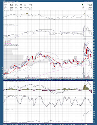 With the Fed meeting coming up on Tuesday, and all the uncertainty, I think it makes sense to not recommend new swing trades until after the reaction. I will not be initiating new positions other then daytrades as well. One group that looks promising for tomorrow (daytrades) are homebuilders. It looks like they may get a short squeeze heading into a fed meeting where a rate cut seems like a foregone conclusion. They may keep running after the decision as well, but who knows at this point. I'm looking at BZH as a possibility here. Also, momentum stocks like AMZN, BIDU, RIMM, WYNN, LVS, etc. have been giving good intraday moves.