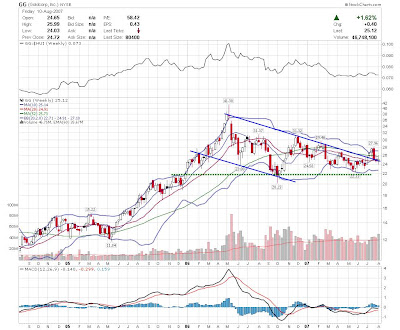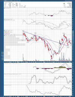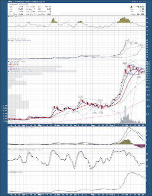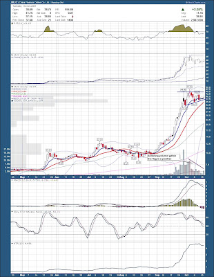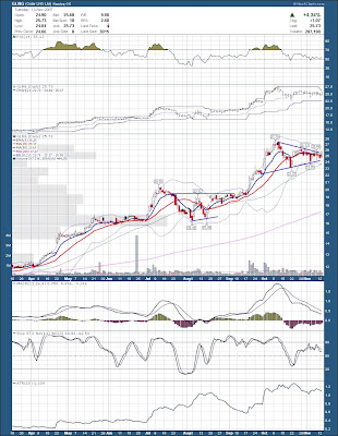 While I'm not advocating going net short right now, I am taking some short positions if the chart setup looks decent. HDNG is one that may be rolling over and could offer a nice drop in quick order. HDNG had a sharp drop after reporting earnings in early August, but then had an equally sharp bounce higher a couple of weeks later. It has been struggling with the area highlighted below recently, and just lost the support of the 50 and 20 day sma's. While I won't ignore the recent strength in this stock, the fact is it could be rolling over and may drop all the way to the trend line near 28. The risk may well be worth the potential reward.