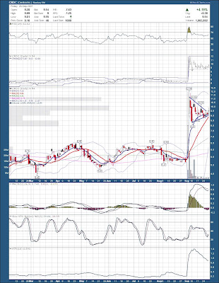 Today is the 10th Anniversary of my wedding and as much as I would like to discuss the huge move after the Fed dropped rates, I don't think it would go over too well at home. The only move I made today was buying into BZH whom I had mentioned in earlier posts. I think there could be a massive squeeze in homebuilders, and in fact there could be a bottom on the BZH chart. I will try and post my thoughts on this tomorrow. One thing I will mention, right now a lot of people may be fearing they missed out. Keep in mind that these moves reverse some times and the prudent thing to do is not chase stocks. Stocks like WYNN, BIDU, RIMM and AMZN have had strong moves leading into todays move and buying now will likely have you underwater soon. Look for stocks like ONXX or DRYS who are starting to move after a pullback.