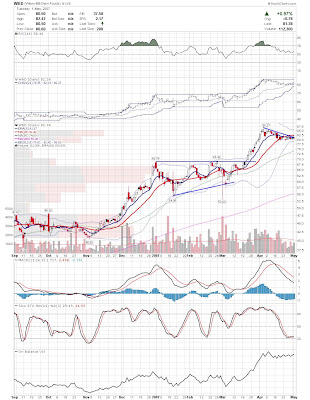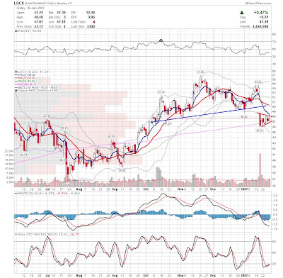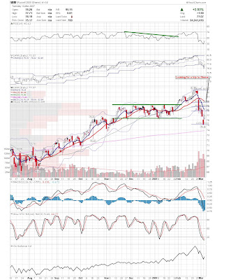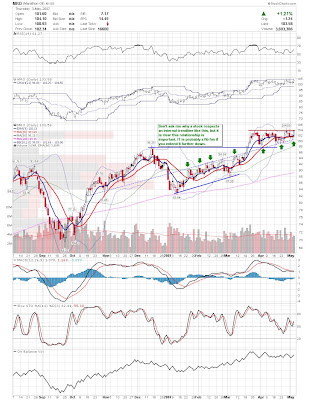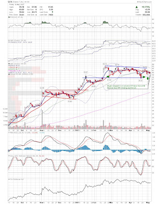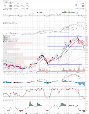 I'm looking to short this market, but it is difficult to find weak stocks that haven't run away yet. I don't like picking tops in strong stocks, so I am looking for stocks that tried to bounce back but are falling under their own weight. UTEK, NVLS, and IT come to mind. I'm also looking at stocks like UA, CHS, PSS, and AEOS in the retail sector for weakness. Sorry for the lack of charts again, but my free time is all tie up with a couple projects I am working on.