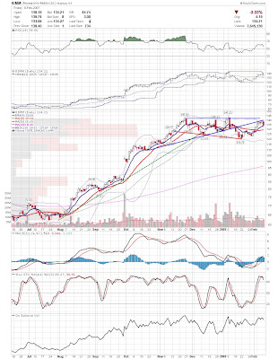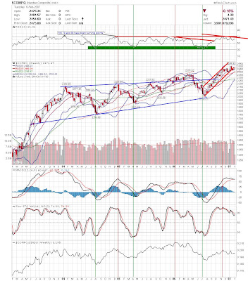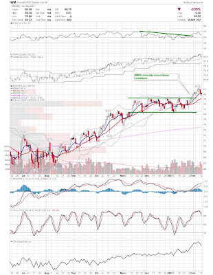 The Dow and S&P500 have pulled back to their rising 20 day sma's and could be ready to move higher. It is interesting how there has been a disconnect with the Nasdaq and Russell recently. When the large caps were making new highs recently, the Nasdaq was threatening to break down. Then last week, the Nasdaq, led by seminconductors, decided to move higher while the large caps drifted back. Now, the large caps seem ready to bounce, as the Nasdaq and Russell are getting extended. Interesting action to say the least. Here are a few charts I found interesting this weekend.