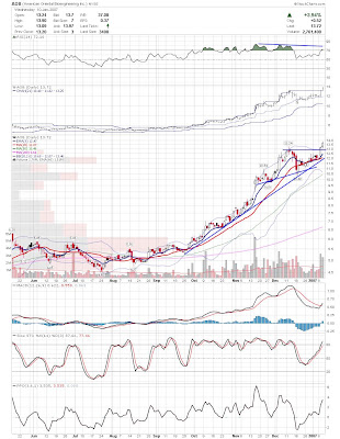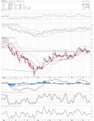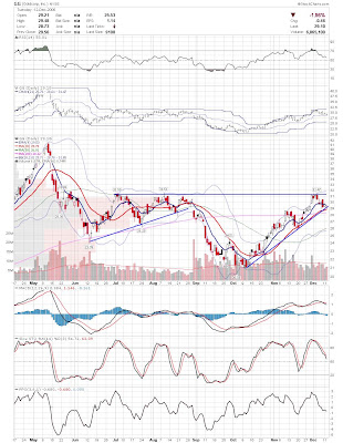 While the media is painting a rosy picture, the indices are struggling a bit here with resistance. There have been a three negative candles confirming resistance at the upper bollinger band so a pullback may be in the works. Commodities have been rallying as suspected and they could be the catalyst for a deeper correction in the major indices. Here are a few charts that look interesting.