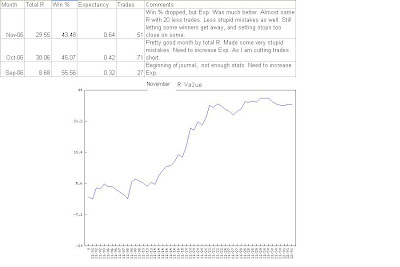 So there you have it. Only 4 trades of over 100, but each had some good lessons in there. Mostly though, the good trades are reinforcing good behavior, and I am learning from my mistakes. One key to point out is that you can have a good trade lose money, and a bad trade make money. As a matter of fact, my best bottom line trade was a play in GLG where I lifted my stop. Although I was right, it was a terrible decision where I was lucky because of my analysis of the sector. Be honest with yourself as you review your trades and acknowledge when you make even profitable mistakes. If you don't realize that you made a mistake, eventually you will give all that money back as you reinforce negative trading habits.