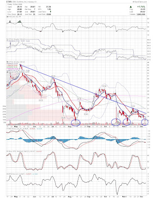 This was another succesful Bollinger Band play. Try to hold on to at least a portion of the trade in case it travels the entire Bollinger band. - Take advantage of luck (took profits on gap up after clear signs of stock being tired)