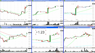 Here is another example of the serious issue I have with getting more gain out of the occasional large winner. This had the potential of 7 to 1 risk reward, and with just a simple trailing 5min 20sma it would’ve been 6 to 1. But, those same exits on a lot of trades I take would be unacceptable. Anyway, I am going to, with a friend, try to come up with as many exit ideas as possible. MDRX was an ok gap, though the gap was out of a few days in a row upside move, which is risky for being more of an exhaustion gap rather then the start of a new trend move on the daily chart. It did have a nice 1 min base, and I hesitated to get in closer to 20.05 or so. You can see the volume was light in that 1 min base. This trade I was certain would go to at least 20.50, even though it wasn’t a perfect pattern. You can see that the gap equal move that I saw right at the open, 20.84 was small resistance at 10a.