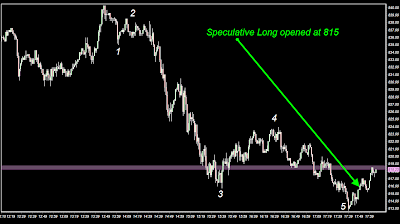 [size=100%]I have no idea what is this very last impulse wave we got on friday, it kicked in after 50% retracement was met, just traded it based for my 15 minutes macd signal as it looked alike a-b-c also, but it ran to the 875 area and over again, which is massive bearish HS right shoulder (see my older post charts). If market leaves this pattern now, perhaps at this time we could be lucky and it retraced allready, but at so far this pattern has been one of the best shorting setup in all timeframs and it appears often also. If it´s part of the right shoulder, we have very serious troubles ahead. Which is the case, we´ll see on next week, but my best guess is as mentioned in charts we work with C upwave, but I have absolute zero positions to hold it. Waiting another signal & retracement from market, besides this very last powerfull upwave should easily retrace also, even it looks alike impulse wave.