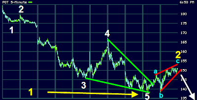 Asian night, shorted EuroYen at 118,72 as it build so beautifull bear diagonal and bear HS above of it - hopefully someone on there is with me with this one, but perhaps this might build something bigger later on, if we get that 50 % we could have inverse HS - which would be extremely bullish pattern. Chrisis, I love this currency paritet (it track´s also stockmarket very closely).[size=100%] Simple a-b-c down, first a down, then b wave up from .618, then c wave down....