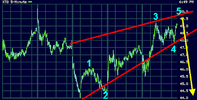 Enjoy, but take care that you won´t be there when final E will be placed, when it´s placed I will be there then ;). I think VIX is the best target to EW chart now, because it does have a fully impulse which could correct A-B-C down. Sorry, I just don´t like non impulsive expanding channels, if Oil will join to the club, then I might re-consider, but at so far it´s still landing, even 50 $ didn´t offer much support for it.