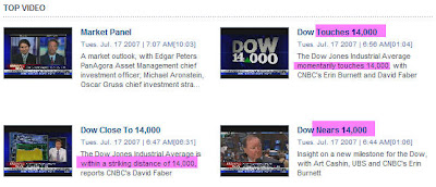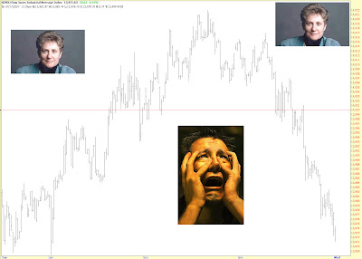 But a glance at the Dow graph below shows that the price is currently about in the middle of a very sweeping range. And now we're in no man's land. Do we bounce off the horizontal line and fly well above 14,000? Do we push our way through the muck beneath that line and start and honest-to-goodness bear market? Or do we continue to fart around ad nauseum. I dunno. And you don't either.