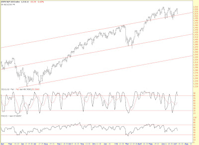 The S&P is approaching the re-entry point on that channel is busted above a number of weeks ago.