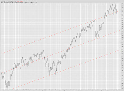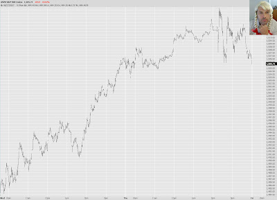 One could look at the market another way........it is pretty easy to lay out a massive rounding top. Just look at the intraday chart of the S&P 500, where I've embellished it with probably one of the worst arcs drawn in human history. (I am not much of an artist). |