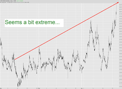 So as the trading day ended, I was kicking myself for having such a substantial position of puts on the Russell 2000 in place. There are some areas in my life where "irresponsibly large" is welcome, but options positions is not one of them. Let's just say I hope I don't wake up to a huge gap-up in the indexes. It could happen.