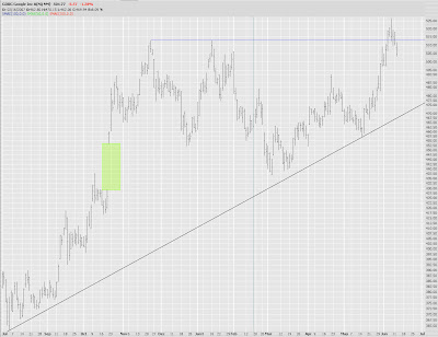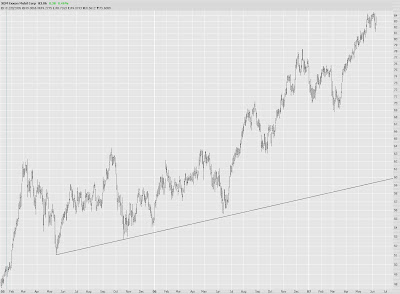 Let me save the bulls some time and say two things: first, I am jumping-up-and-down, wild-eyed, chart-crazed bearish right now. So if you want to take that as a marvelous contrary indicator, please do so. Second, I've even done some legwork for you. The call option on the S&P 500 for July at $1,625 (which, gosh, should be easy - that's only 7.5% higher than the current market) is a mere 40 cents asking price! The symbol is SPB-GE. Go nuts.