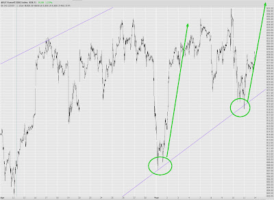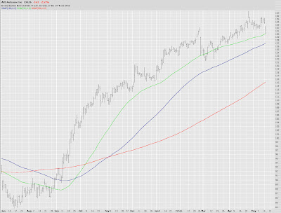 The Dow Jones 30 - which is far and away where all the strength is these days - tried very hard to push its way up to the 13,500 mark. After ascending nearly 150 points, it went completely flaccid, and it wound up 37, creating this lovely shooting star.