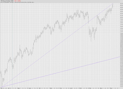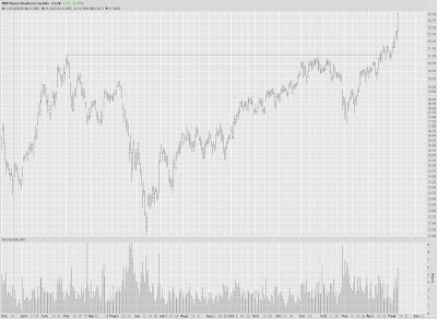 Yet if you look at the Russell 2000, we passed that extension a long time ago. I've shaded in the entire area above this extension. I can't really drawn any conclusions from this. I love Fibs for the "in between" bounces, but I'm not so sure how germane these extensions are for these markets. |