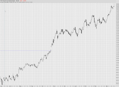 The S&P 500 was also down just a touch today. I see in after-hours trading that Google (GOOG) blew away its estimates (I have no position in GOOG) and it is up something like $13 per share. Obviously it will be interesting to see what the stock does in "real life" tomorrow. But the company's ability to print money is clearly undaunted.