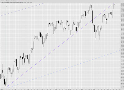 Perennial favorite $RUT (the Russell 2000) fell down today. It's interesting to see the candlesticks here. Three down days in a row, each one a little more strongly down than the prior one.