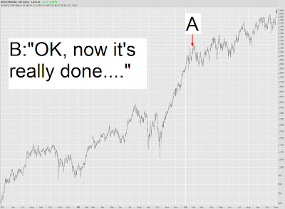 And then what happened? Of course. The bulls came to the rescue. Incredibly, inexplicably, disgustingly, the market shook off the barrel-full of bad news and actually went into the green for the 700th day in a row. Un-{Nixonian expletive deleted} believable.