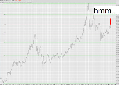 Another item I watch is China - one shorthand way to do it is via GCH (Greater China Fund). One interesting tidbit is that it seems to have retraced up to a retracement level. We'll see if it backs away or not. |