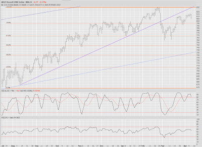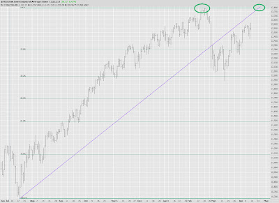 Looking at a short-term S&P chart, we can see that we're getting dangerously close to the high set back in February. It isn't the all-time high (set early in 2000), but it's getting close to that as well. The big question now is, does the market (a) sink from here (b) push up to a double top and then sink (c) blow past the February high and make an assault on the all-time high from the bubble.