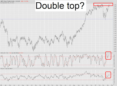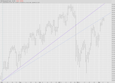 I am deeply disappointed - and maybe even a tad disillusioned - that the indexes have pushed past their late March highs. That's not good. It indicates more strength on the bulls part than I anticipated. My waning confidence makes me consider that it is a real possibility we could push onto new highs this month.
