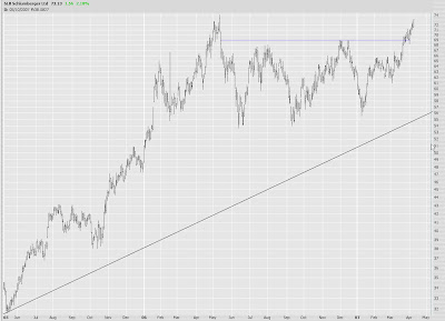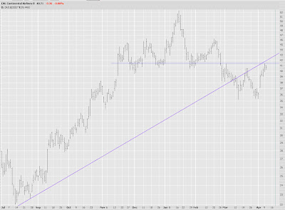 The $XMI graph still gives me some hope. The spurt from July to February made sense. In fact, I mentioned late last summer how bullish the $XMI looked, because it was emerging from a pretty substantial base. But there's no base this time. This is a retracement.