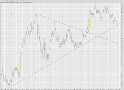 The story for the indexes is the same across the board, so pay attention: if they can break the lows set next week, it's party time. If they stabilize and recover, we're probably going to be range-bound by something approximating today's range. Here's the NASDAQ composite with a potential target circled. |