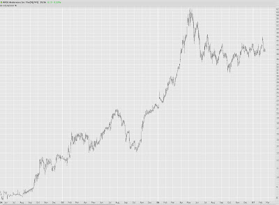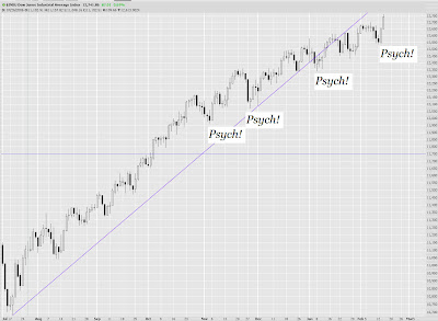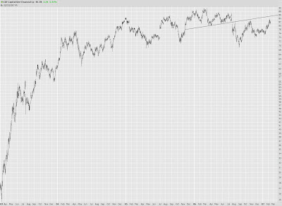 The trouble I am having with conjuring up bullish ideas is that it's tough finding safe bullish patterns in a market this high. I could point out plenty of momentum plays, but I'm not really into taking advantage of the Greater Fool theory.