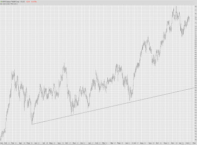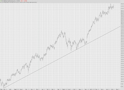 Looking at the past several months, you can very clearly see that early in this bull phase the price action and RSI were lined up (green lines) and yet, for a couple of months or more, RSI and price action have been absolutely divergent (red lines).