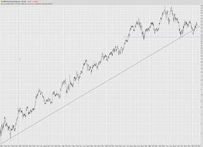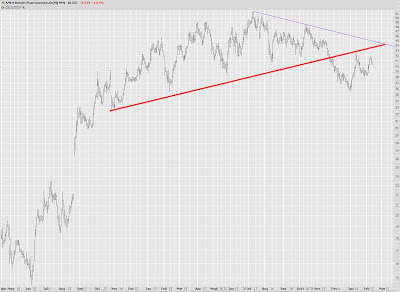 The stock market finally - FINALLY! - made its mind up on direction today, and it was down. As you can clearly see from the horizontal line of support, the moment it pushed through, it was party time.