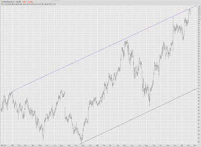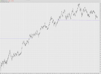 Good day on the market today, bears. This time, after a look at a couple of indexes, I'm going to show just stocks on which I think puts might be a lucrative position. They have a number of properties in common - - the stocks are high priced (meaning the options can get really juicy). They have options with decent volume. And they seem to be running out of steam.