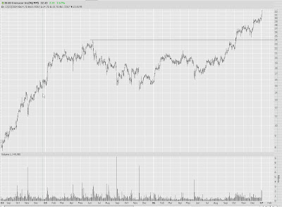 RIMM worries me, as does Google. This is amazingly strong. Just look at the accompanying volume as well. If it busts above its lifetime high, marked here, I'm going to hang it up for now on this one.
