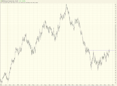But getting back to the bit about being a technician. At the moment, this really isn't a technician's market. Sometimes the market is more favorable to technical analysis than others. And I'm speaking of both bullish and bearish plays. The kind of analysis I do, described above, really isn't yielding much these days. Yes, GOOG and SHLD could wind up being fantastic buys. I guess I'm just having trouble getting past their nosebleed levels to believe they would burst hundreds of points higher from here.