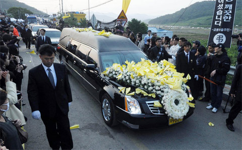 卢武铉出殡仪式今晨举行 灵车驶往首尔