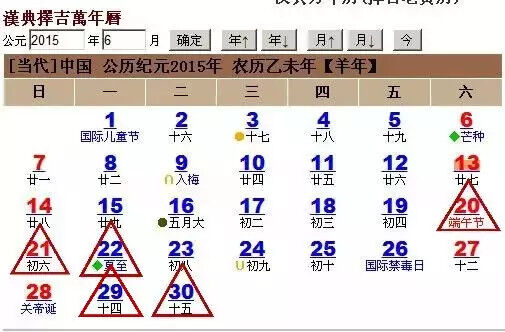 农历五月俗称毒月 农历五月,包括芒种、夏至两个节气,是最要注意的一个月份,农历五月俗称毒月。 《农历五月养生》说五月初五、初六、初七、十五、十六、十七、二十五、二十六、二十七为九毒日,以及十四为天地交泰日,一共十天,夫妻禁止同房,犯者大伤元神并损寿,夭亡奇祸不测! 这十天内,务必端容肃己,严禁杀生,行淫,否则严重伤身损气耗精元。 君子应节制嗜欲,食物清淡,减少酸味,增加苦味,益肝补肾。此时节应静养,与自然和谐平定心气。能全月不同房,对身心都有极大的好处。 所以古代有习俗,五月让妇女回娘家住一个月,让夫妻暂时分开,避免性生活。 其中的九毒日更要慎重。端午正是九毒日之首,也因此这一天有许多喝雄黄酒、插艾草等避邪驱毒的仪式,其中都寓有古德智慧经验的传承。 以下是2015年农历五月份的「九毒日」及「十四天地交泰」,请千万谨慎这十天,甚至是一整个月。 九毒日--行房纵欲不宜(农历) 五月初五(阳历6月20日): 地腊,五帝校定生人官爵,犯者削禄夺纪,又九毒日,犯者夭亡奇祸不测,又杨公忌。 五月初六(阳历6月21日): 九毒日,犯者夭亡奇祸不测,又雷斋日。 五月初七(阳历6月22日): 九毒日,犯者夭亡奇祸不测。 以上三日为「初毒日」 五月十五(阳历6月30日): 月望,九毒日,犯者夭亡奇祸不测,又四天王巡行。 五月十六(阳历7月1日): 九毒日,又天地元气造化万物之辰,犯者三年内夫妻俱亡。 五月十七(阳历7月2日): 九毒日,犯者夭亡奇祸不测。 以上三日为「中毒日」 五月廿五(阳历7月10日): 九毒日,犯者夭亡奇祸不测,又月晦日。 五月廿六(阳历7月11日): 九毒日,犯者夭亡奇祸不测。 五月廿七(阳历7月12日): 九毒日,犯者夭亡奇祸不测,又斗降。 以上三日为「末毒日」 五月十四(阳历6月29日): 四天王巡行,夜子时为天地交泰,犯者三年内夫妇俱亡. 另外,还有农历夏至、冬至这两个阴阳大转换的节气的前后三天(最好是半个月)最好也是清净独处、敦伦闲邪, 因为这几天犯淫的报应也是难以想象!大家保重。  甘露琉璃药师讲堂禅义法师温馨提示大家:宜从农历五月初一芒种节禁起,戒过一月。果能色欲撙节,自可百病消除。 今人每多腰腿酸疼,脊肩酸麻,四肢无力,背心发热,咳嗽不止,时而头昏头痛,时而眼花眼痛,秋冬则恶寒怕风,手足发冷,春夏则喉疼目红,腹痛闭痧。正当年壮之时,乃见种种不足之症,推原其故,无不因未能节欲而来。其为病也由渐而深,由微而着,初虽所患尚小,久则酿成大病,不可不畏死而谨守于先也。 多欲伤生,断非药饵能补,好色者恃药以恣欲,此亡身之本也。草根树皮之品,万难益髓填精,其能滋补者,不过偏阴偏阳,藉以流通气血,及气血既亏,虽药石亦无从补救。 古云「服药百颗,不如一宵独卧」,慎无恃药可补身。 以上是农历五月份的「九毒日」及「十四」,请千万谨慎这十天,甚至是一整个月喔。 至于神明降生的明鉴日期,而淫污冒犯,有在瞑瞑之中被谴责还不知觉者,所以,世间有循规谨慎的人,而明里受疾病折磨早早夭折的伤害,暗中又遭削夺俸禄减少阳寿的祸殃,往往都是淫污冒犯所至,与其追悔而无法挽回. 现恭录斋戒的日期,以及天地人的忌日,希望爱惜自身的人,都遵守它。 阴历五月开始整整一个月,请大家在这个月里多多行善,念念善念,茹素戒淫,放生,助印! 戒淫得寿康 戒淫得吉庆 戒淫得平安 戒淫得清净 戒淫得泰祥 戒淫得光明 请多转发,救人救己,双手合十礼! 上大下愿大和尚讲解的药师琉璃光如来本愿功德经,其中提出,药师法门的基本宗旨是: “身体健康无病苦, 心灵健康无烦恼, 灵性健康出轮回”, 甘露琉璃药师讲堂的成立,正是缘自上大下愿大和尚的这个宗旨。 为了让菩萨们在学佛修行的路上,得益于药师法门的加持力,让修行生活健康、圆满、自在,并最终得以成就,因此,特提出讲堂的宗旨: “幸福讲堂, 健康人生, 快乐修行”, 以共同达到 “物药济世,法药济心, 和谐圆融,世界大同”
