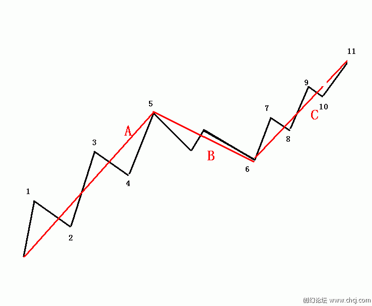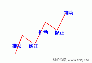 在一个上涨趋势中,市场的波动延续上涨--修正--上涨--修正--上涨--转折