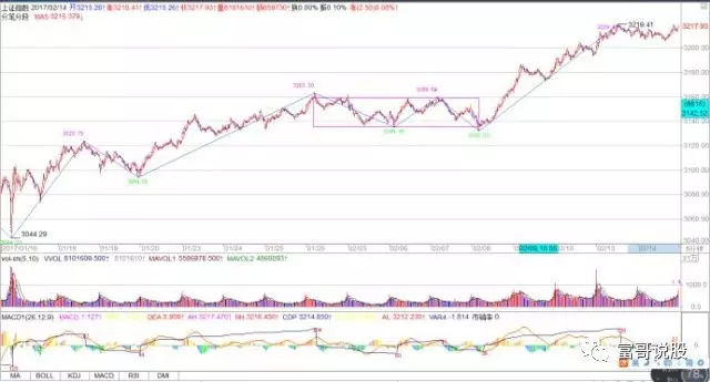 2月14日沪深两市窄幅震荡整理,大盘强势五连阳。盘面来看,钢铁、新疆、有色、次新涨幅居前。两市共53股涨停,局部性赚钱效应仍在;总成交4313亿,量能再度萎缩。  技术上如何理解大盘? 日线收一个阳十字星。五日线与十日线上行速度有所提高。黄白线离开零轴向上方继续爬升,红柱继续伸长。 30分钟级别上,尾盘出现一个强底分,也站上了五周期线,所以,仍有机会去再创新高。5分钟级别上,3044以来,即明天开始再向上完成一个线段,然后出现一个新的本级别中枢,然后因对着三种分类,不详述了,总体上,大盘在3200点一线震荡整固一下最好。 老师有话说 一、今天的两大主线:次新和基建,全靠龙头撑着。和胜股份六板后,剔除一字板及新开板的,仅有4只次新股跟风涨停:华统股份、天马科技、万里马、德新交运;基建就更可怜,天山股份反包涨停后,龙二北新路桥都没封住,收盘也只有天山股份一个光杆司令!