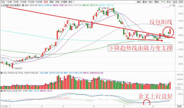 笔者认为,绝大多数的行业细分指数有效突破二浪杀跌结构下跌趋势线,明确转势信号给出,有利深沪两市股指继续沿着小周期趋势方向,继续震荡攀升。 上证指数日线分析图解