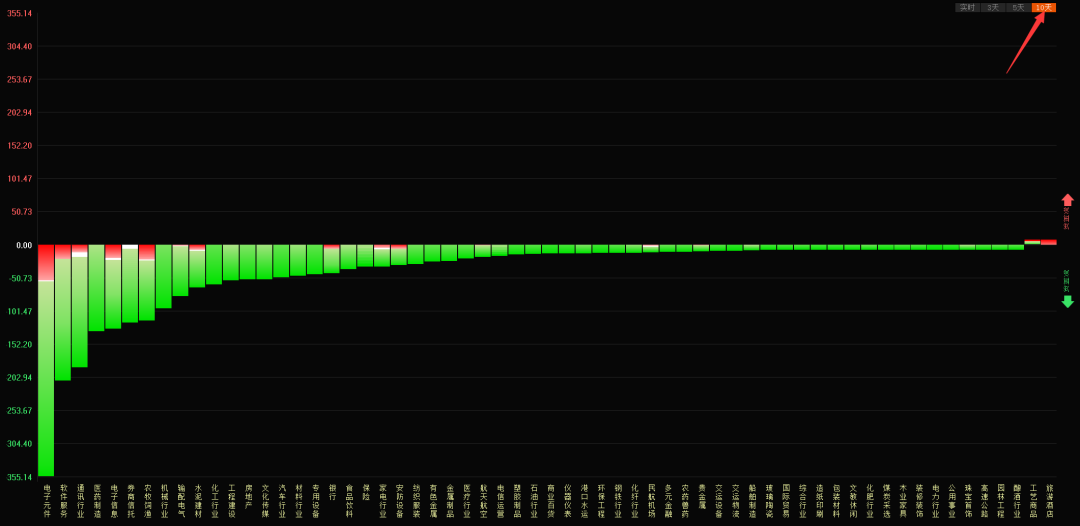 主力资金继续流出大科技板块,今天如此,近十天也如此。科技板块持续做空,是近期市场弱势的主因。