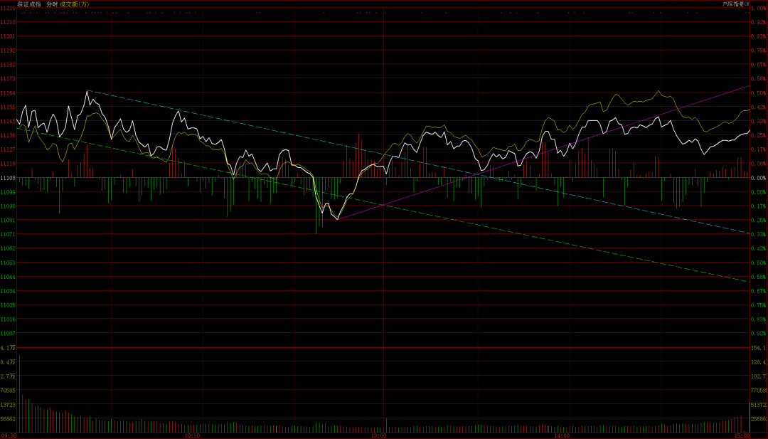 大盘如午间判断,下午有反弹,但成交量不足,制约了反抽高度;沪深比较,沪指弱势,深市稍强。