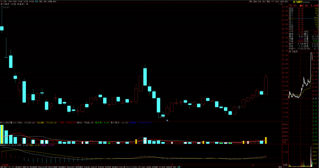 今天最新股权转让公司是音飞储存(603066),临近尾盘直线冲板,尾盘被砸,收涨8.5%。