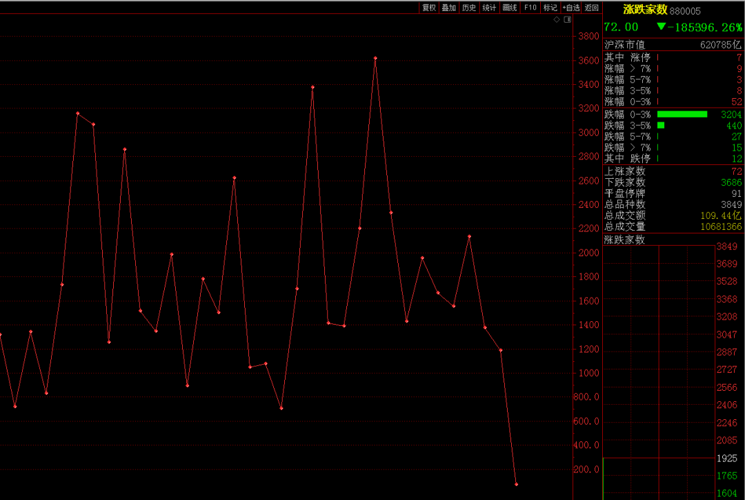 集合竞价后,涨跌家数指标下行到极低位,上涨个股仅有72只,因而部分资金抄底买入。