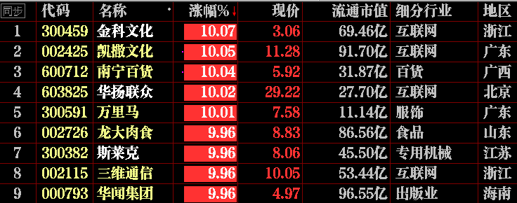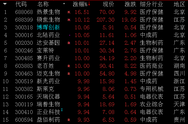 医药医疗板块上午收涨4%以上99只,其中13只涨停: