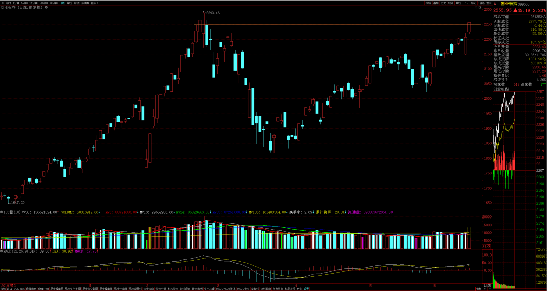 创业板指大涨2.23%,日线已经收复2月26日阴线,按此趋势,本周将无悬念越过2月25日高点2293.46点。